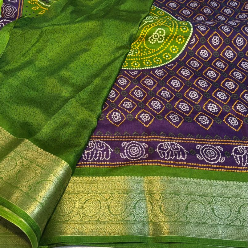 Elevate your ethnic wardrobe with this exquisite Bandini Contrast Soft Dola Silk saree, crafted from premium dola silk renowned for its luxurious drape and subtle sheen. The saree features an intricate jacquard border that adds sophisticated dimension to the classic design. Dola silk's natural breathability makes it ideal for all-day wear, while the soft texture ensures comfort without compromising on elegance. Perfect for festive occasions, celebrations, or formal gatherings, this saree seamlessly blends traditional craftsmanship with refined aesthetics. The contrast detailing enhances the overall appeal, making it a versatile addition to your collection.