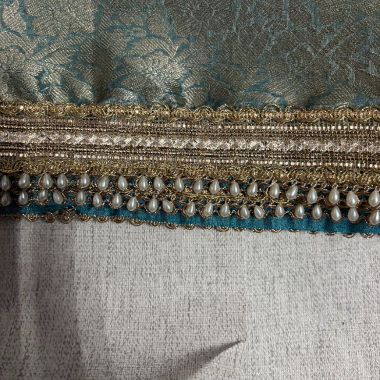 Inspired by Janhvi Kapoor's refined aesthetic, this aqua blue saree showcases the delicate elegance of soft tissue silk paired with intricate handmade cutwork laces. The lightweight fabric drapes beautifully while maintaining its structure, making it ideal for weddings, festive occasions, and formal events. Each cutwork detail is meticulously crafted by hand, adding an artisanal touch that elevates the piece beyond mass-produced alternatives. The cool aqua tone complements a range of skin tones and pairs effortlessly with traditional jewelry. Perfect for those who appreciate timeless craftsmanship and contemporary styling.