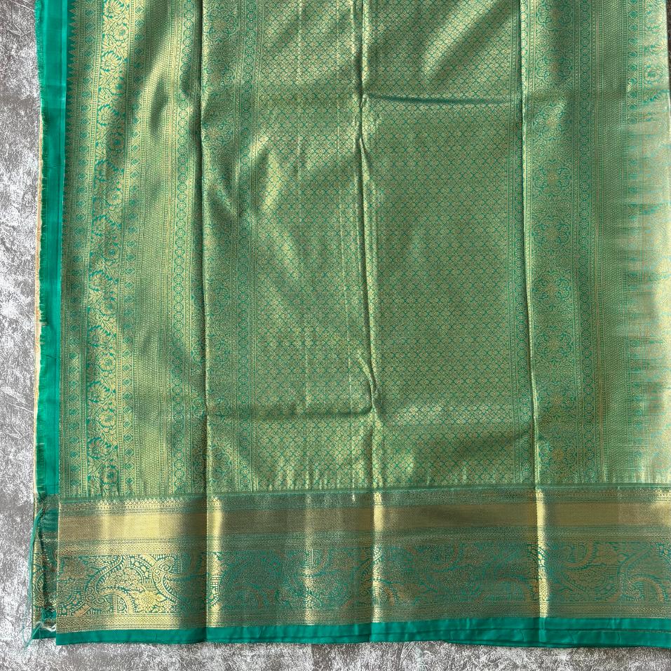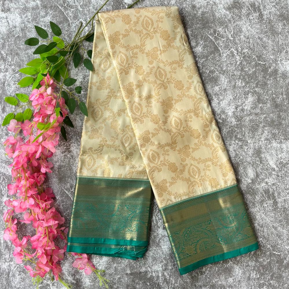 Off white and Emerald green pure mix kanjivaram saree