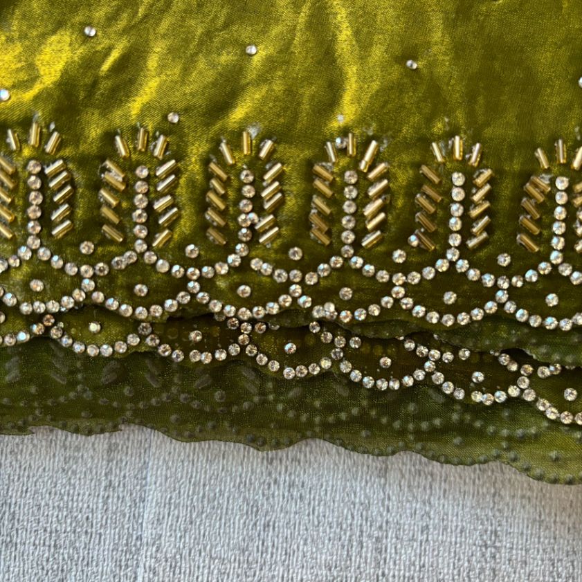 Party wear Mehandi Green saree with Black Blouse with Dimond work