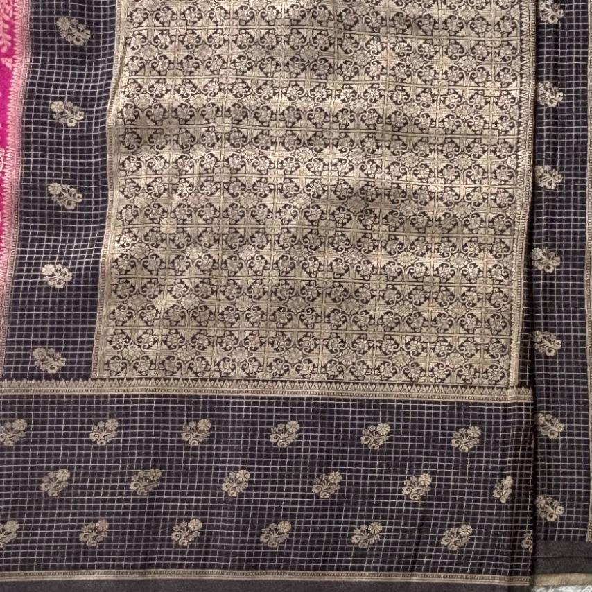 Elevate your ethnic wardrobe with this stunning Rani pink and black chinon crape saree, The luxurious chinon crape fabric drapes beautifully, offering both comfort and sophistication for any occasion. Perfect for those who appreciate modern drape