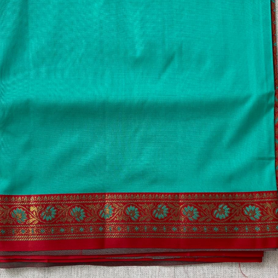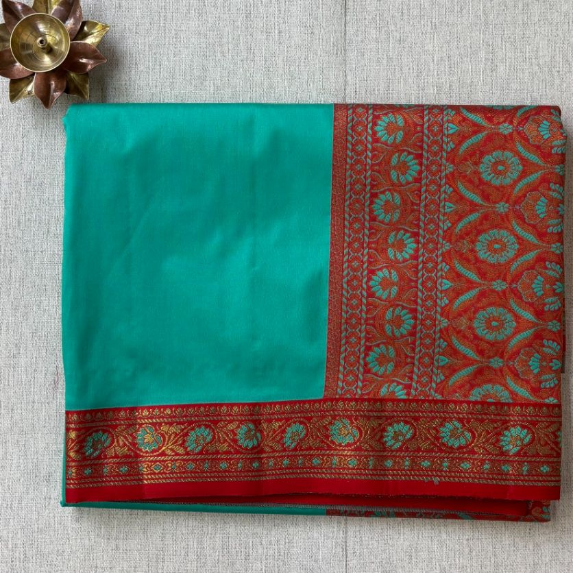 Teal green Brick red hand woven Banarasi soft silk